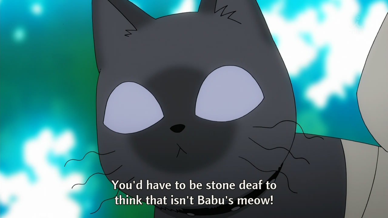 | Zombie cat. Back at the shrine in which Chihiro lives, Babu has revived...sort of. Leading Chihiro and his forever friend-zoned childhood friend through town on a wild chase. |